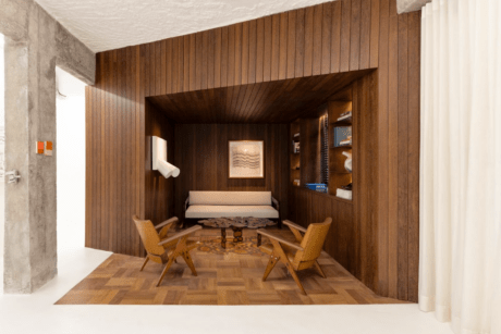 AMRA7 Apartment, a harmonious fusion of Brazilian modernism and innovation, paying homage to its historic roots with contemporary elegance.