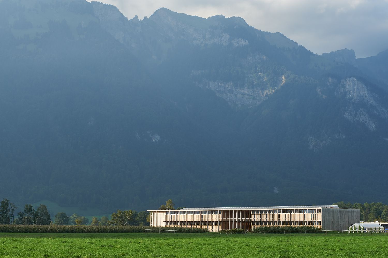 The Agricultural Center in Salez, designed by Andy Senn Architekt, represents a thoughtful approach to the future of agriculture, blending tradition and innovation. The design draws on the principles of "low-tech" architecture, reflecting a philosophy that values rediscovering and reinterpreting age-old solutions. This approach, inspired by the ideas of architect Livio Vacchini and Luigi Snozzi, emphasizes simplicity and sustainability. The building incorporates traditional methods, such as using wood and clay for construction and natural ventilation inspired by historical stable designs in the region.