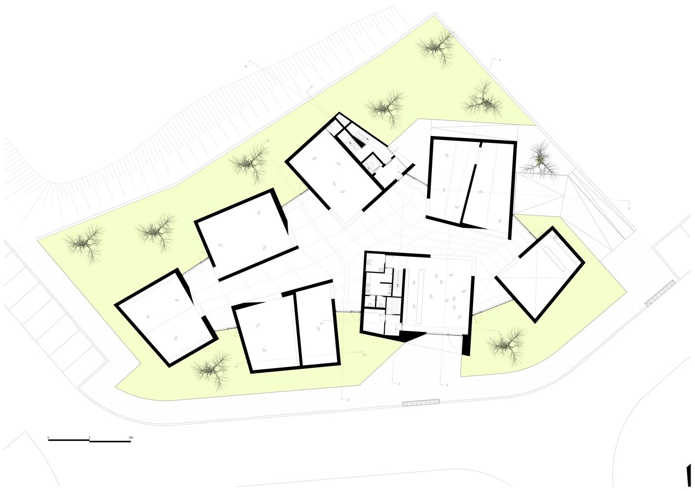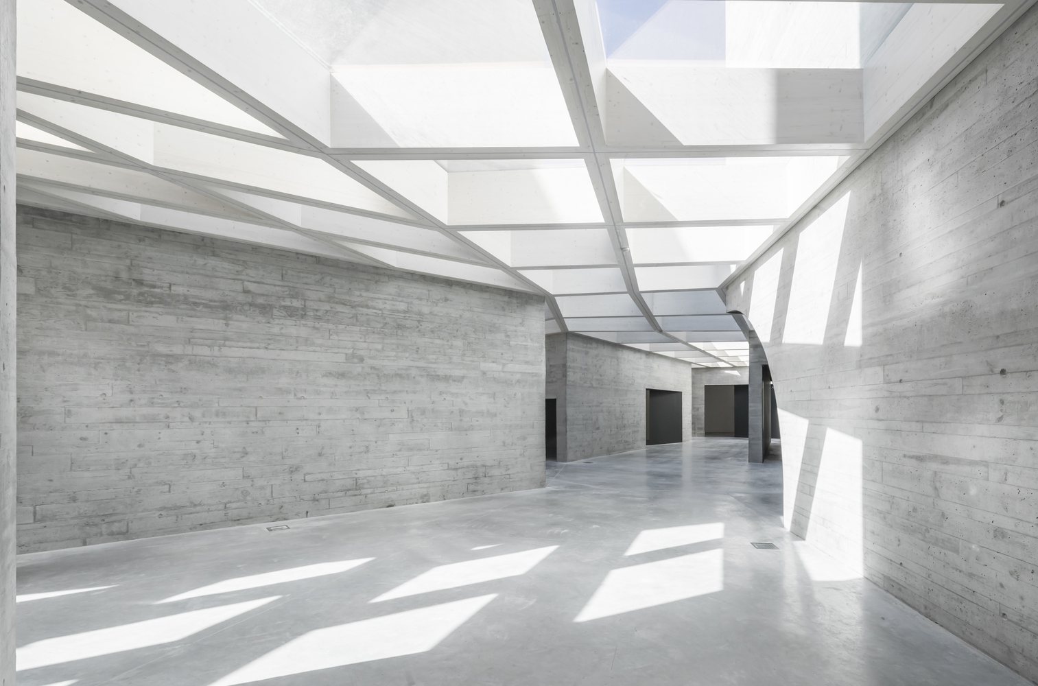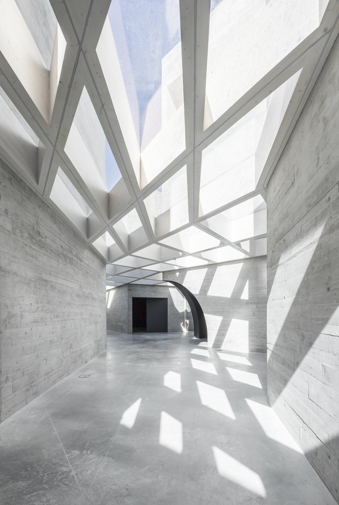 Internally, the museum’s exhibition spaces echo the monumentality of Romanesque interiors, not only in scale but also in form. The ceilings of each volume reinterpret the various roof types used in Romanesque architecture, while the material choice of concrete in its natural state bridges contemporary aesthetics with historical reverence. This design creates an atmospheric symbiosis between different eras, respecting the past while remaining firmly contemporary.