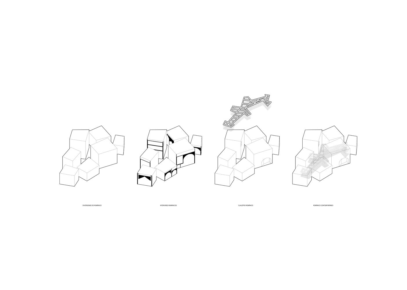 The Interpretation Center of Romanesque, designed by Spaceworkers and located in Lousada, in the Porto district, exemplifies these principles in its architectural design. The building establishes a direct dialogue with its surroundings, becoming a new reference point in the village center. Its design is deeply rooted in the principles of Romanesque architecture in Portugal, serving as a bridge between the present and the Romanesque past. The volumetry of the building reflects the concept of unity within diversity, a characteristic of Romanesque architecture, presenting a series of volumes with different heights and dimensions. Each volume serves as a distinct exhibition space, unified by a central cloister-like area, which allows for the interplay of light and shadow, enhancing the visitor's experience.